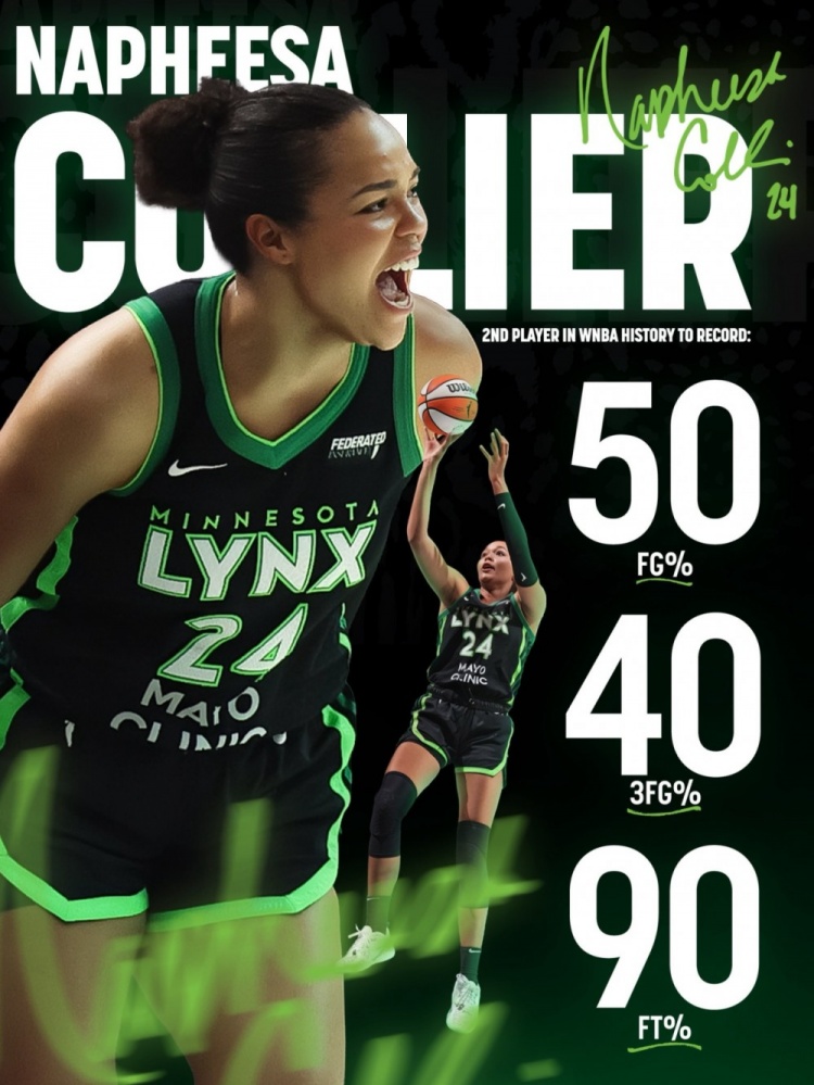 山猫队球星科利尔场均20+跻身180俱乐部 创WNBA历史新纪录